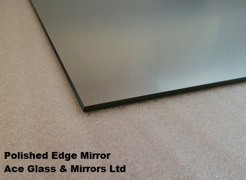 We keep a large variety of standard size processed mirrors in stock ready to buy. Either with just the sharp edge removed for the most cost effective option. Or with fully polished edges for a neater finish. Or with 25mm wide decorative bevelled chamfer (as shown in pictures to the side). All produced on a larger scale in batch quantities, which saves money and time compared to having them individually made to size/order. Below are current sizes available; please feel free to get in touch for current prices and availability.