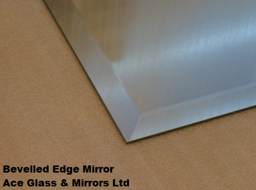 We keep a large variety of standard size processed mirrors in stock ready to buy. Either with just the sharp edge removed for the most cost effective option. Or with fully polished edges for a neater finish. Or with 25mm wide decorative bevelled chamfer (as shown in pictures to the side). All produced on a larger scale in batch quantities, which saves money and time compared to having them individually made to size/order. Below are current sizes available; please feel free to get in touch for current prices and availability.